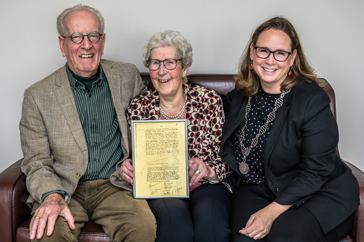 Ondertussen zaten ze niet stil. Meneer werkte onder andere als tekenaar en deed allerlei avondstudies. Daarnaast was hij 15 jaar commandant van de brandweer in Wormer. En nog steeds is hij daar elke maandag en dinsdag te vinden om het wereldnieuws door te nemen en te helpen schoonmaken. Mevrouw werkte op kantoor en later jarenlang in modezaken. Muziek is ook belangrijk voor het stel. Meneer speelt nog altijd althoorn bij Eensgezindsheid en mevrouw zingt in koor Over de Dijk waar hun zoon Frank de dirigent van is. En het geheim van 60 jaar huwelijk? Dat is elkaar vrijlaten en vooral ook belangstelling tonen voor elkaar. Van harte gefeliciteerd en nog heel veel geluk samen!