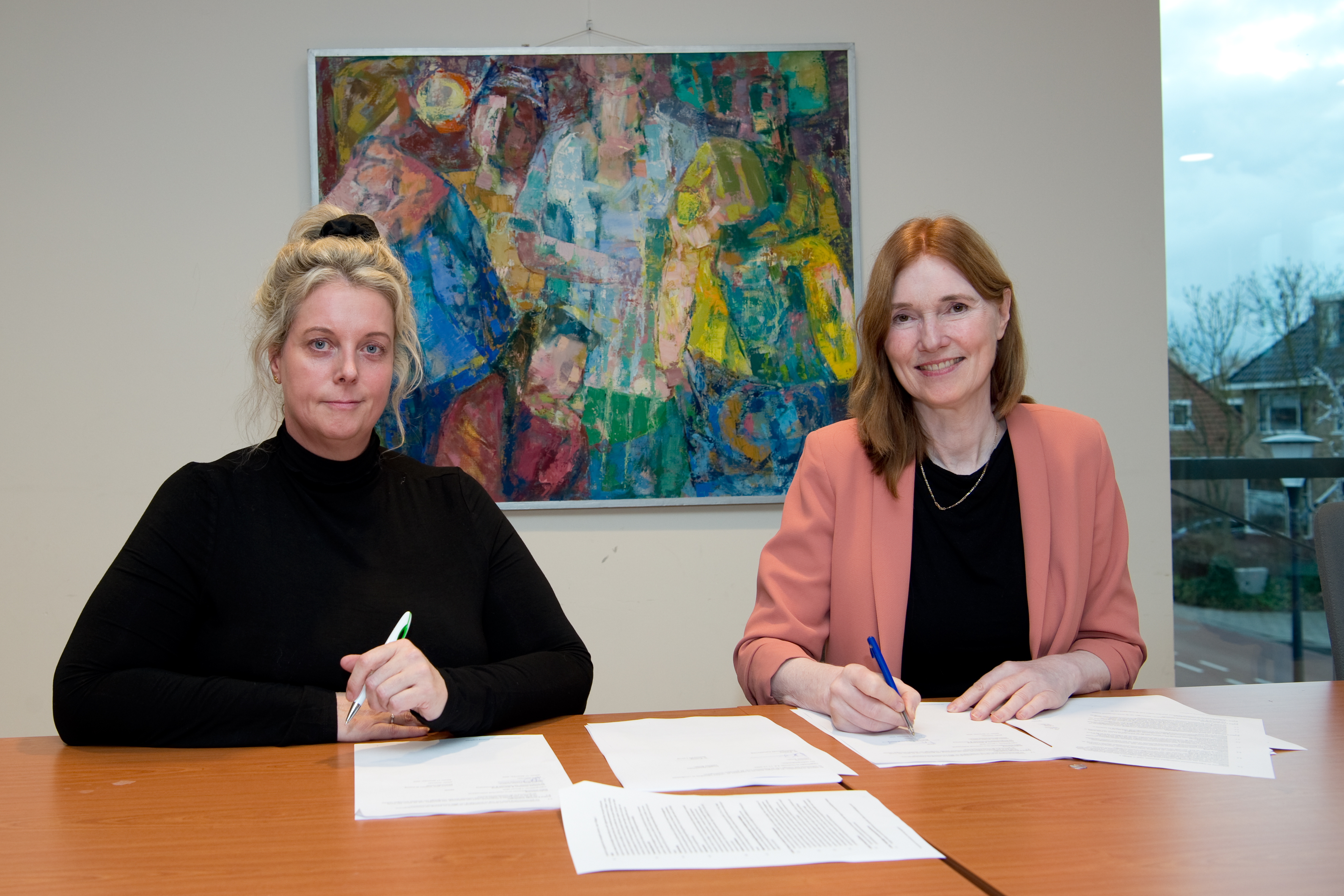 Na de toespraken ondertekenden Wopkje Kuipers (afdelingshoofd Samenleving) en Nellieke de Koning (bestuurder van Levvel) het contract en de verwerkersovereenkomst.