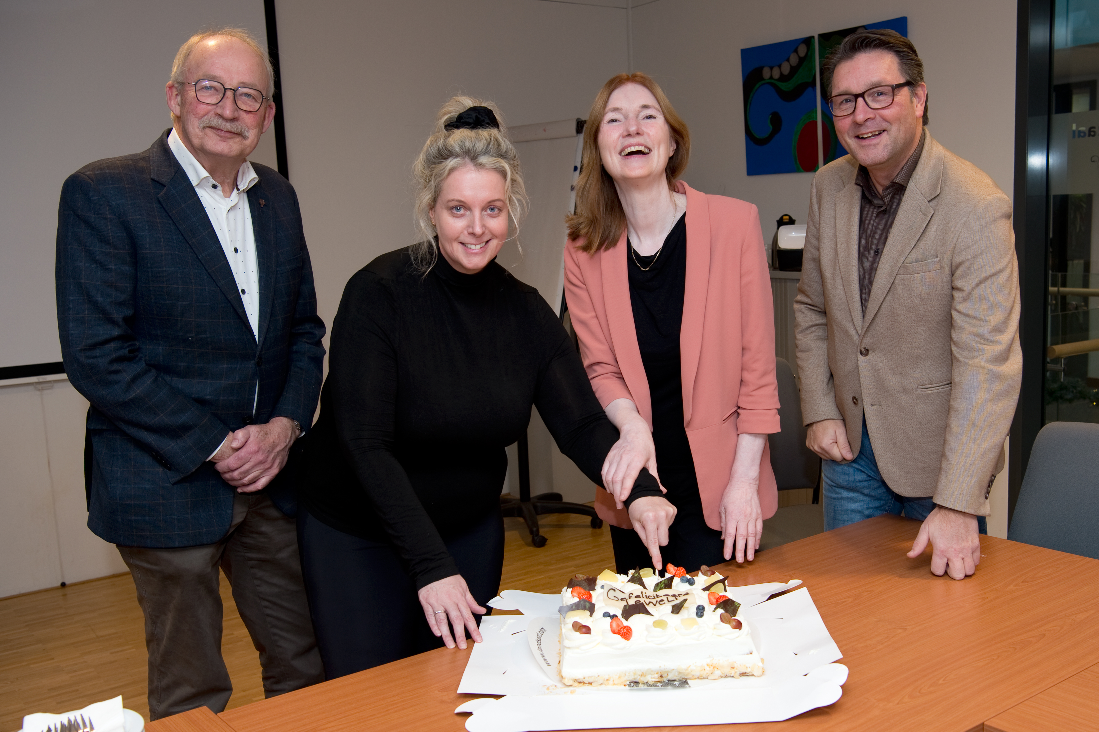 Dit feestelijke moment werd gevierd met het aansnijden van een taart, waarna er gelegenheid was om samen na te praten.