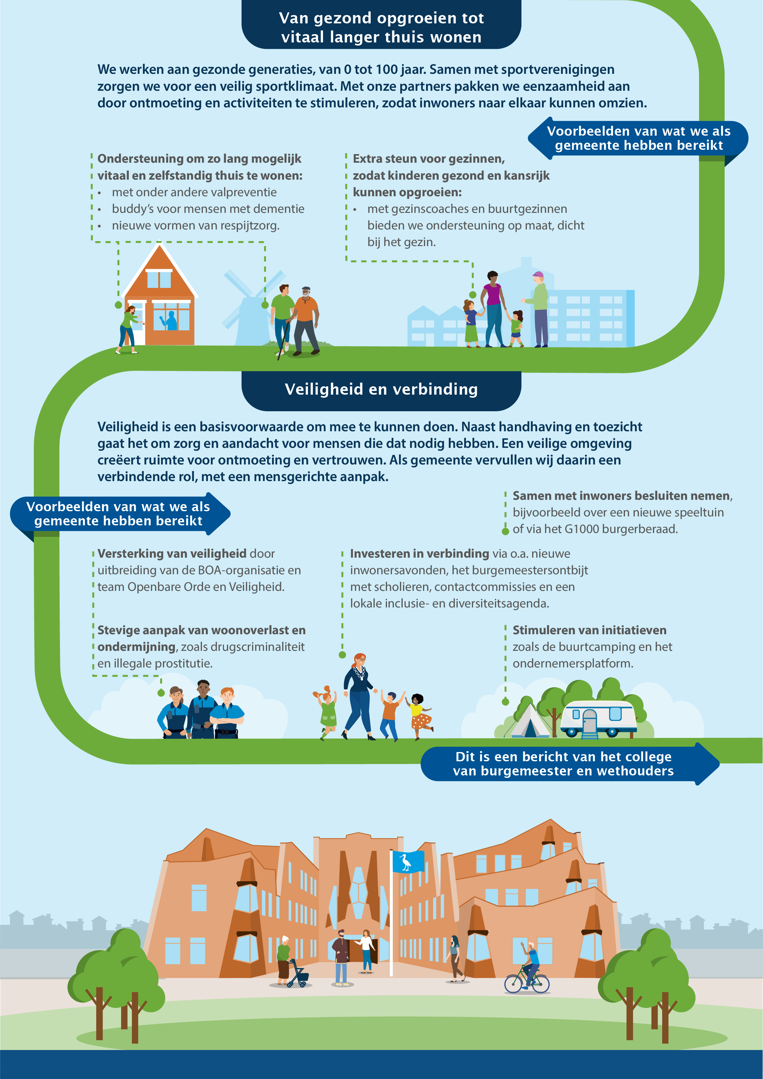 - Investeren in verbinding: van onder andere nieuwe inwonersavonden, het burgemeestersontbijt met scholieren, contactcommissies en een lokale inclusie- en diversiteitsagenda